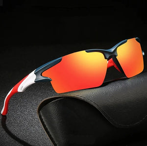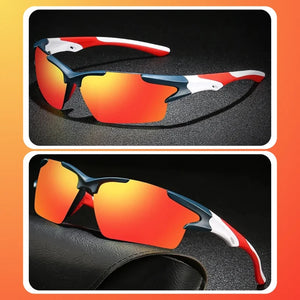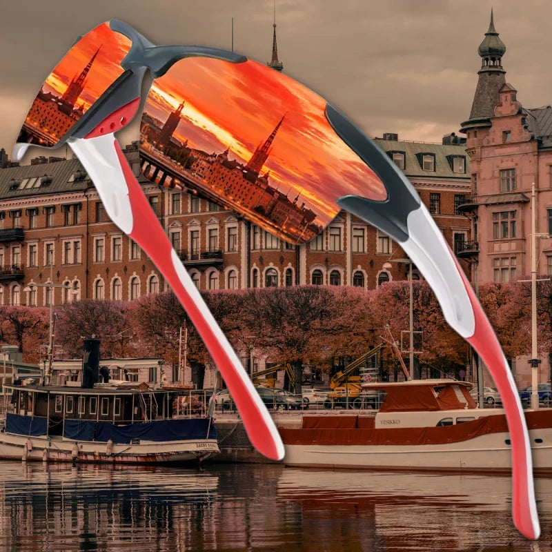 Stilīgas un funkcionālas sporta saulesbrilles ar oranžām spoguļlēcām gan vīriešiem, gan sievietēm. Šīs brilles ir ideāli piemērotas aktīvām aktivitātēm brīvā dabā, nodrošina uzticamu acu aizsardzību un izceļas ar modernu, enerģisku dizainu.
