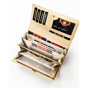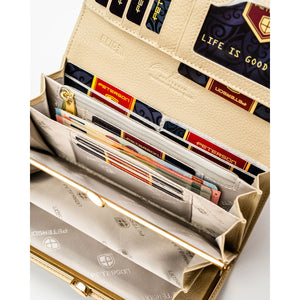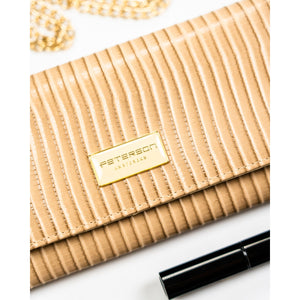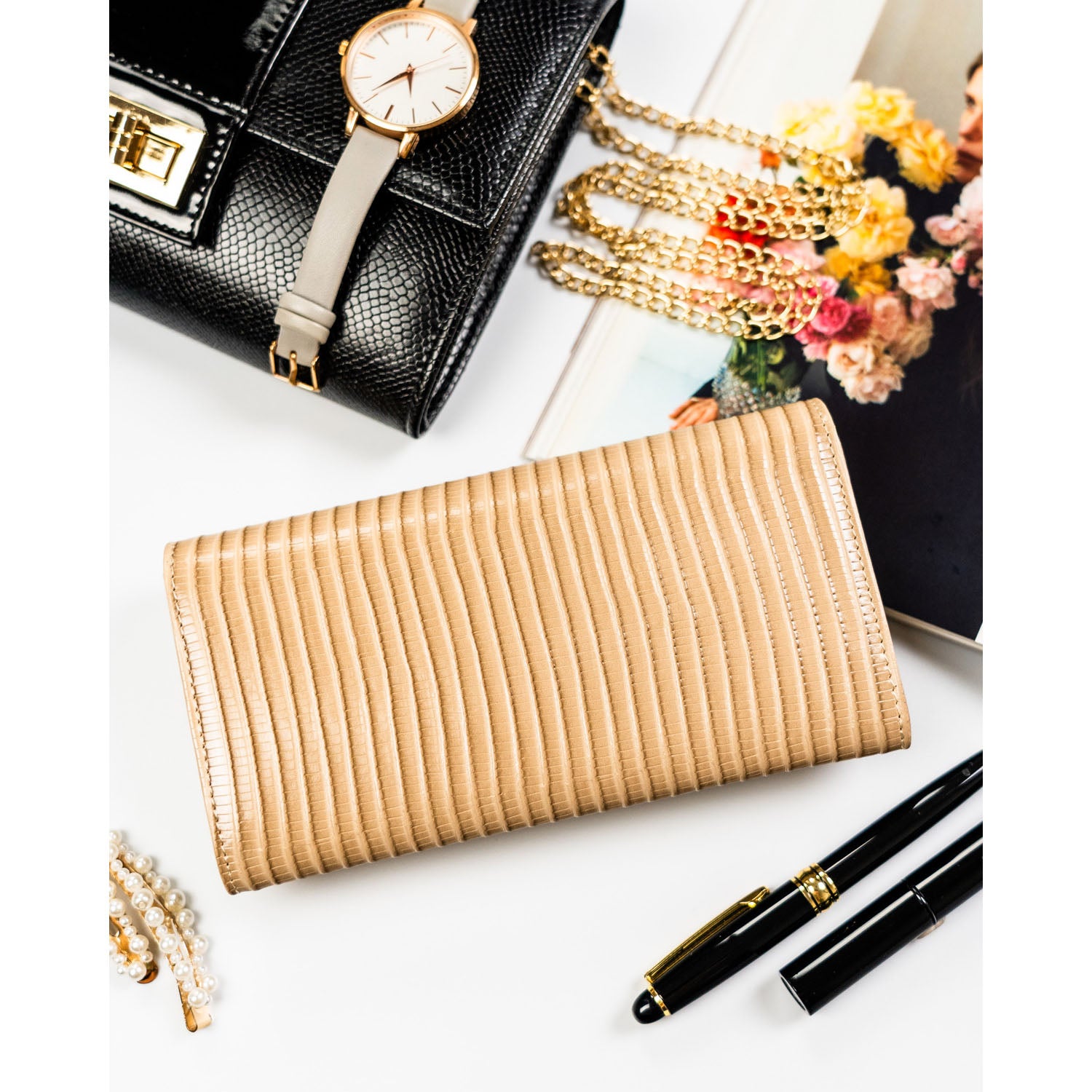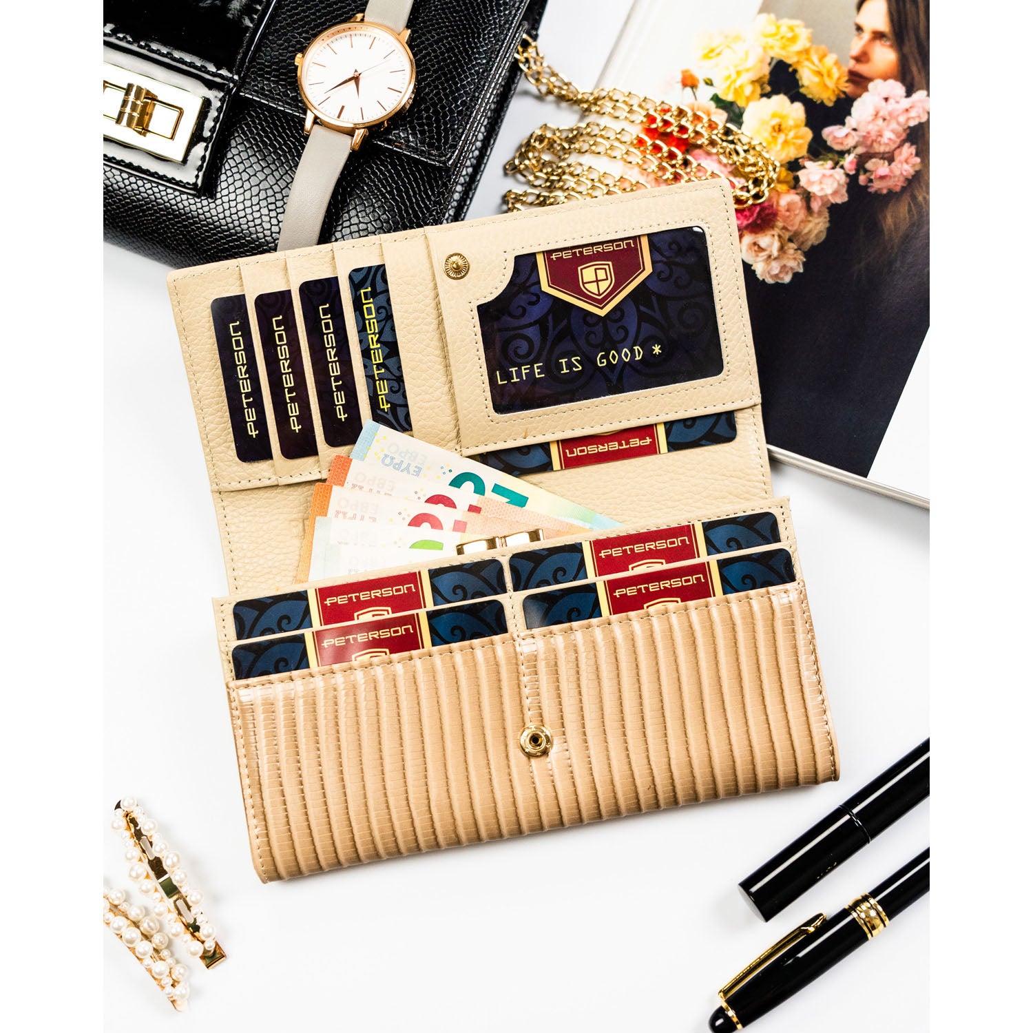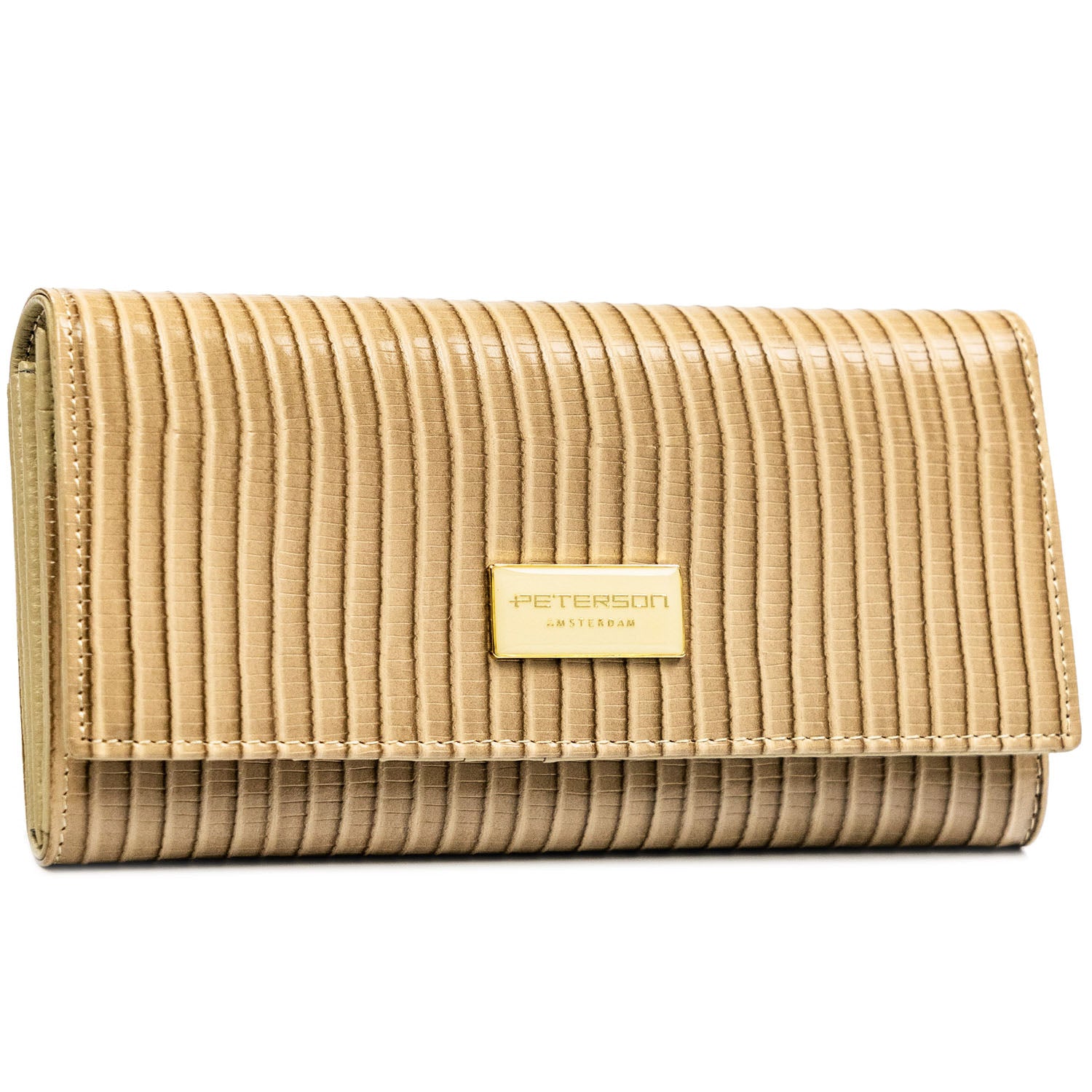 Peterson sieviešu maks, izgatavots no mākslīgās ādas, bēšā krāsā, ar RFID aizsardzību.