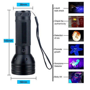 Šim UV lukturītim ir 51 UV gaismas diode, tāpēc apgaismotajās zonās varam panākt lielāku kontrastu.
