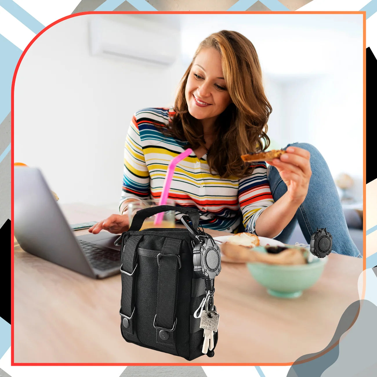- Izturīga karabīne ļauj ērti piestiprināt pie jostas, mugursomas vai rokassomas