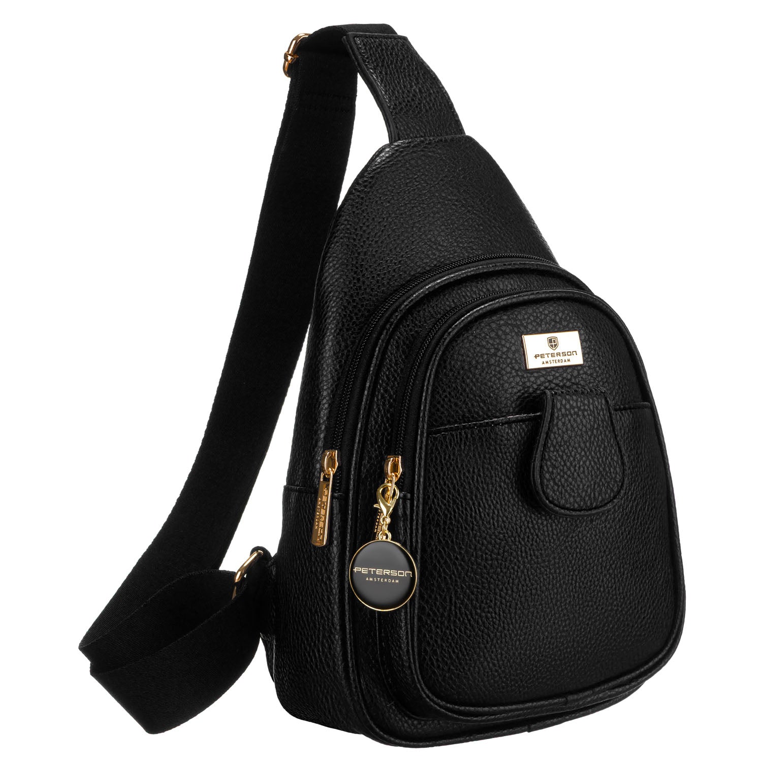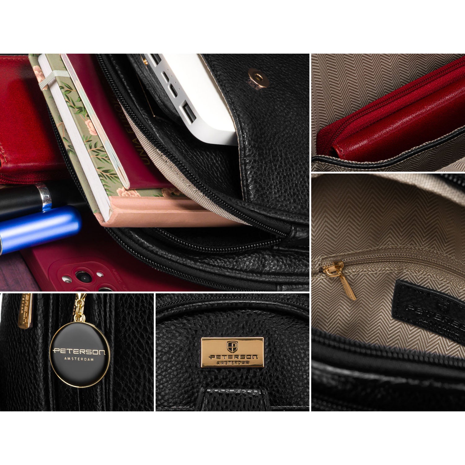 Peterson melna sieviešu rokassoma no organiskās ādas - stilīga un praktiska izvēle.