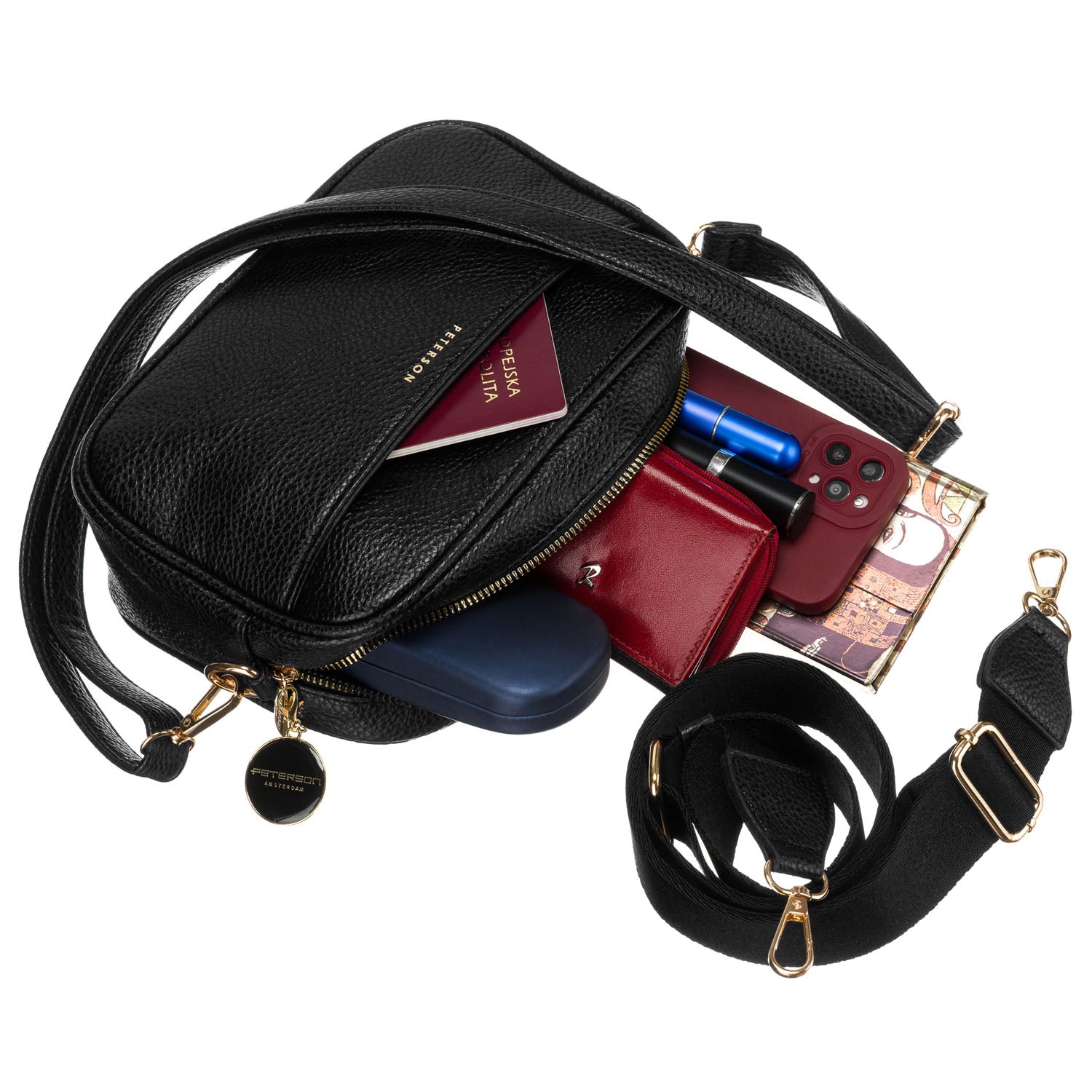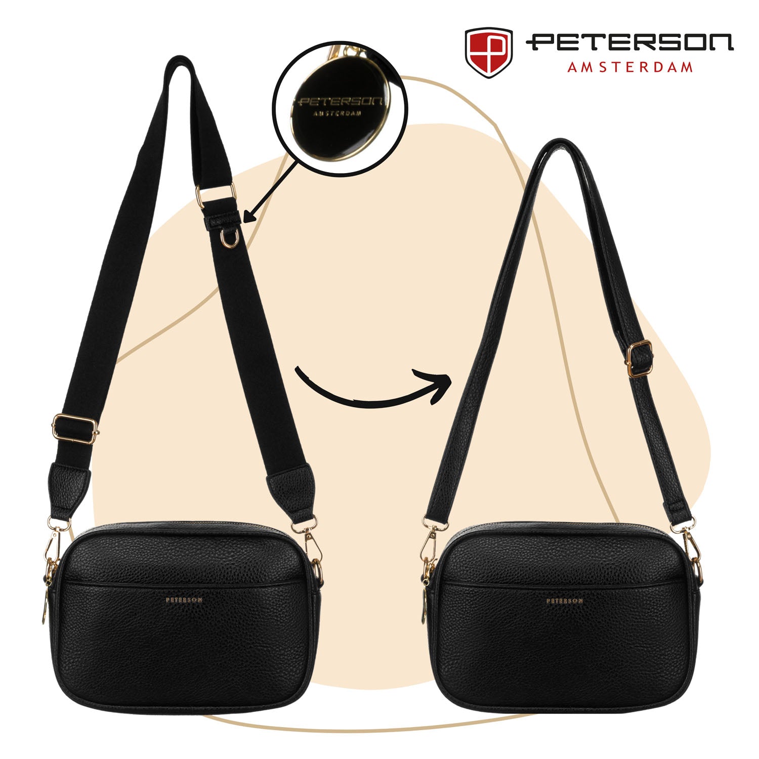 Peterson melnā sieviešu rokassoma ir stilīga un praktiska izvēle ikdienas lietošanai.