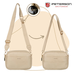 Peterson tumši bēša sieviešu rokassoma no organiskās ādas - stilīga un praktiska izvēle.