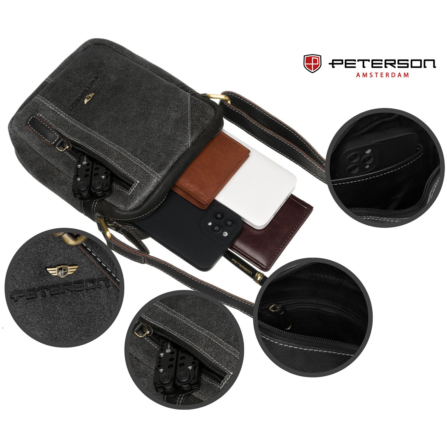 Melnā vīriešu rokassoma Peterson, kas izgatavota no īstas ādas, ir lieliska izvēle ikdienas lietošanai, apvienojot stilu un funkcionalitāti.