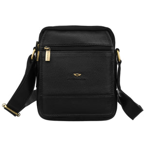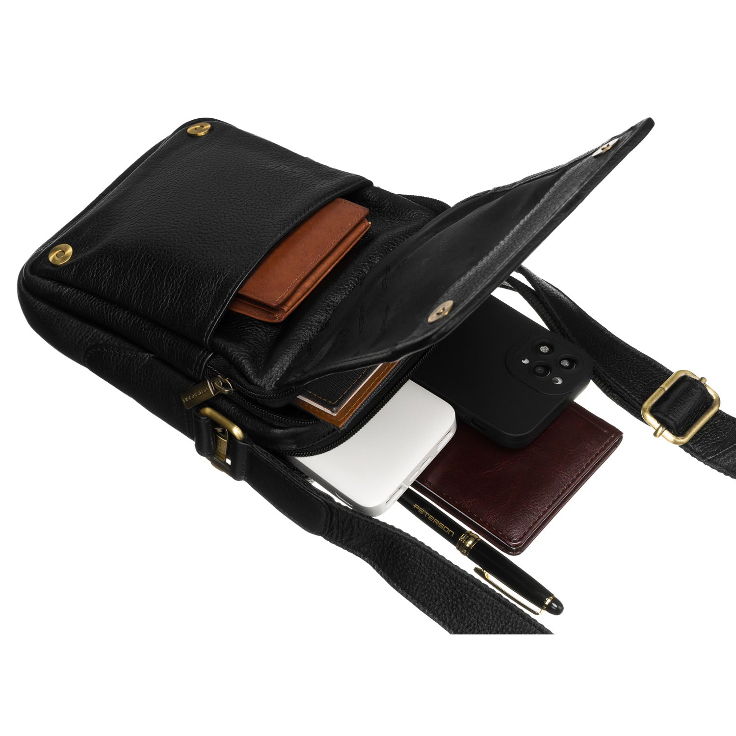 Peterson vīriešu soma no dabīgas ādas, melnas krāsas, ar divām nodalījumiem un sešām kabatām.
