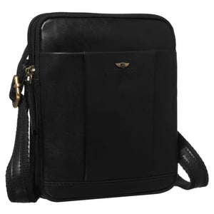 Peterson vīriešu soma no dabīgās ādas, melnā krāsā, ar diviem nodalījumiem un trim kabatām.