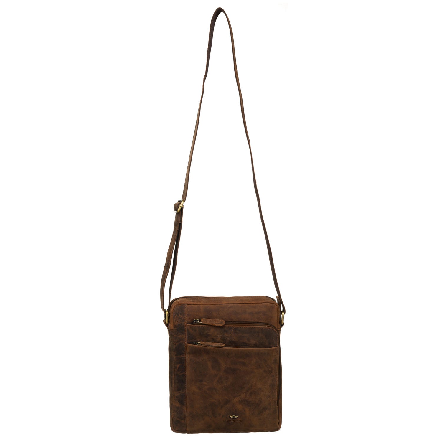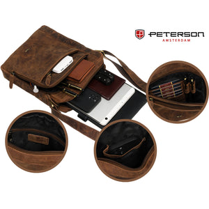 Peterson vīriešu soma no dabīgas ādas, brūnā krāsā, ar diviem nodalījumiem un četrām kabatām.