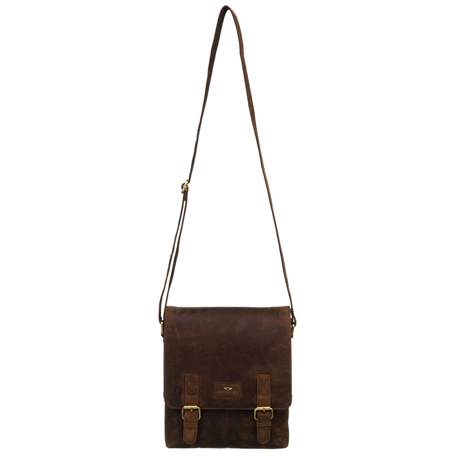 Peterson vīriešu soma no dabīgās ādas, brūnā krāsā, ar regulējamu siksnu.