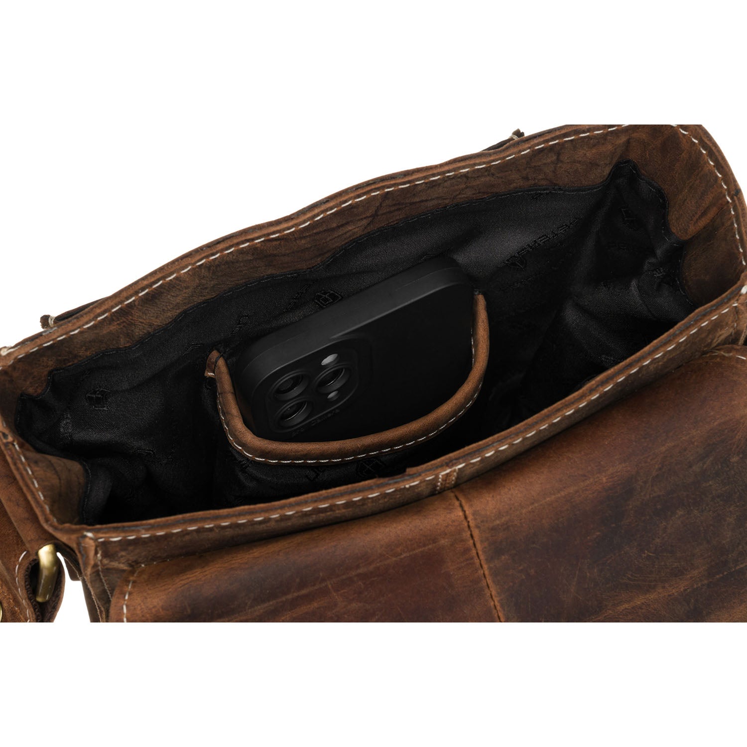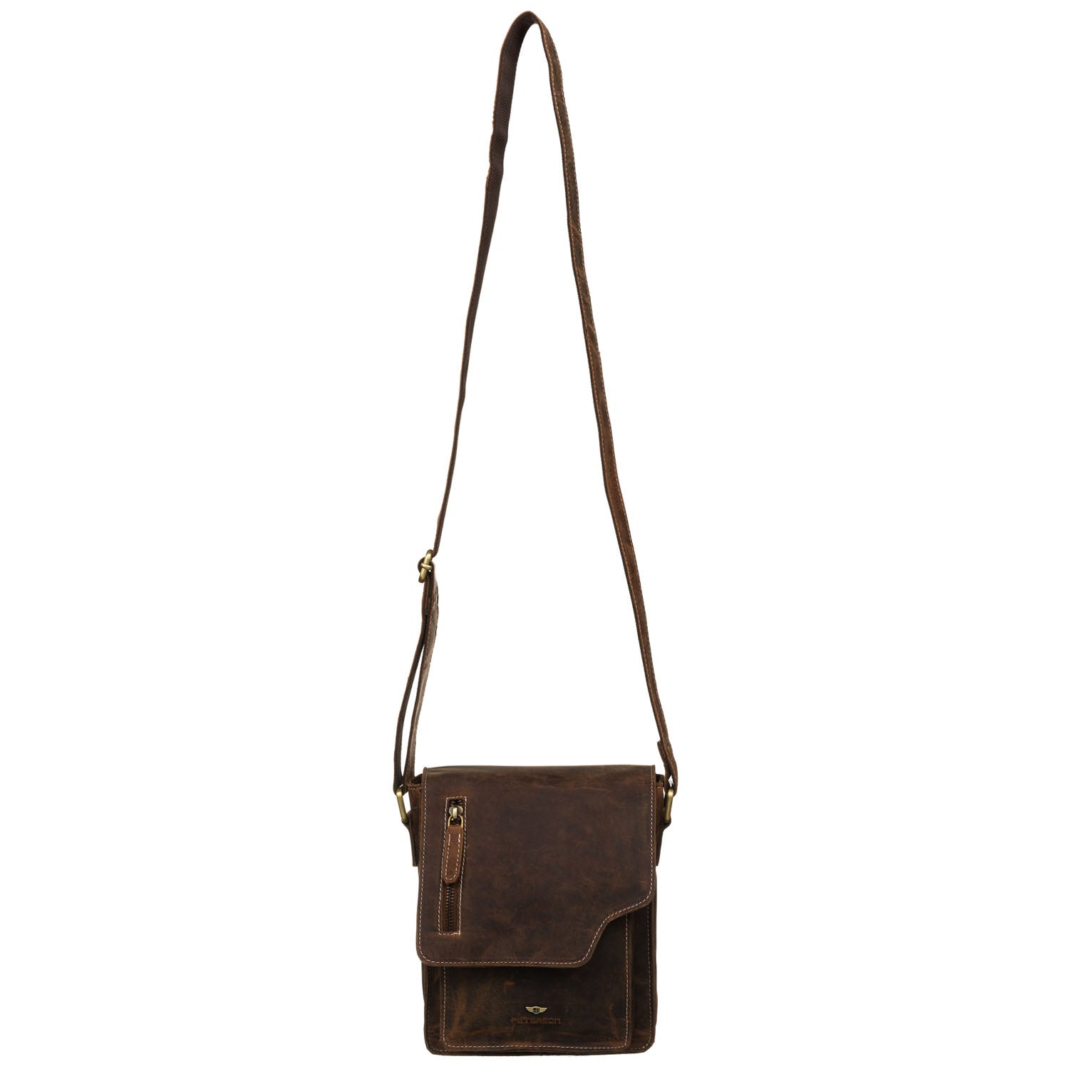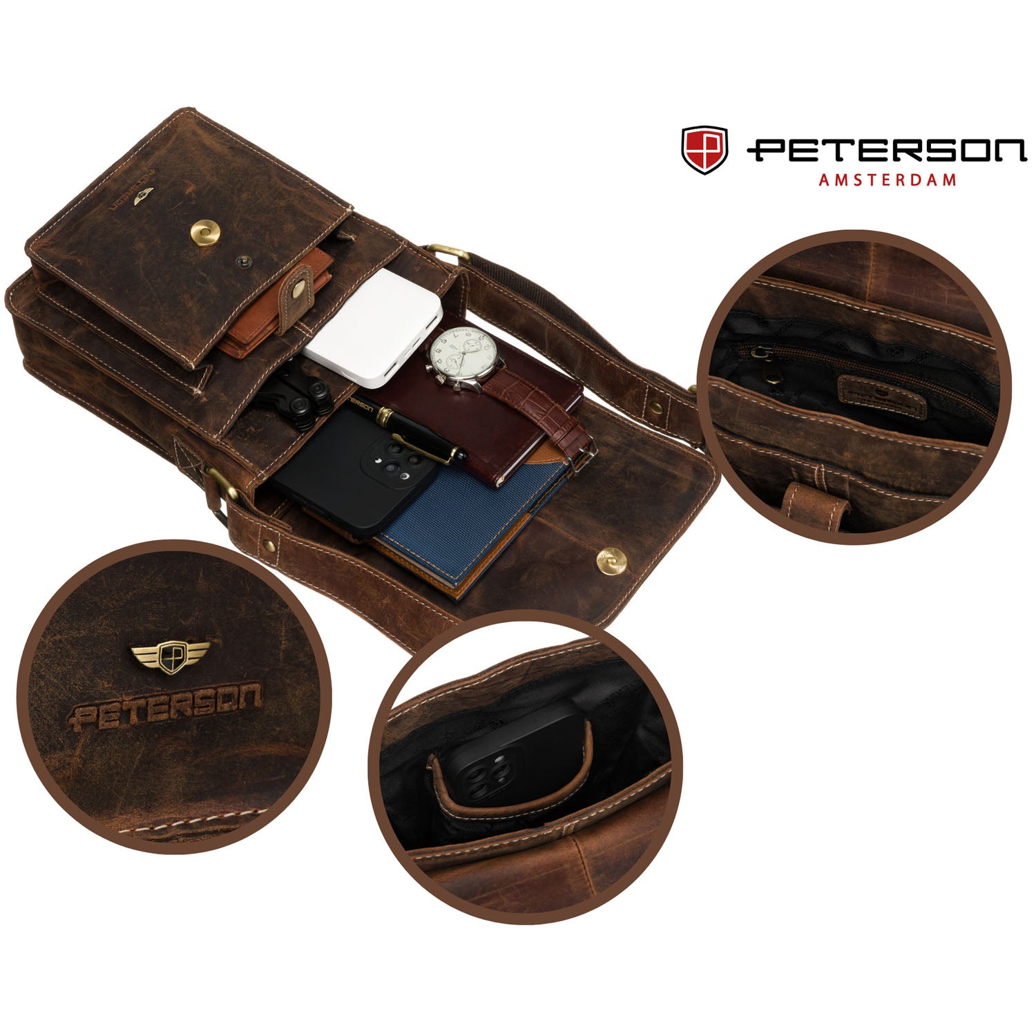 Peterson vīriešu soma no dabīgas ādas, brūnas, ar regulējamu siksnu.