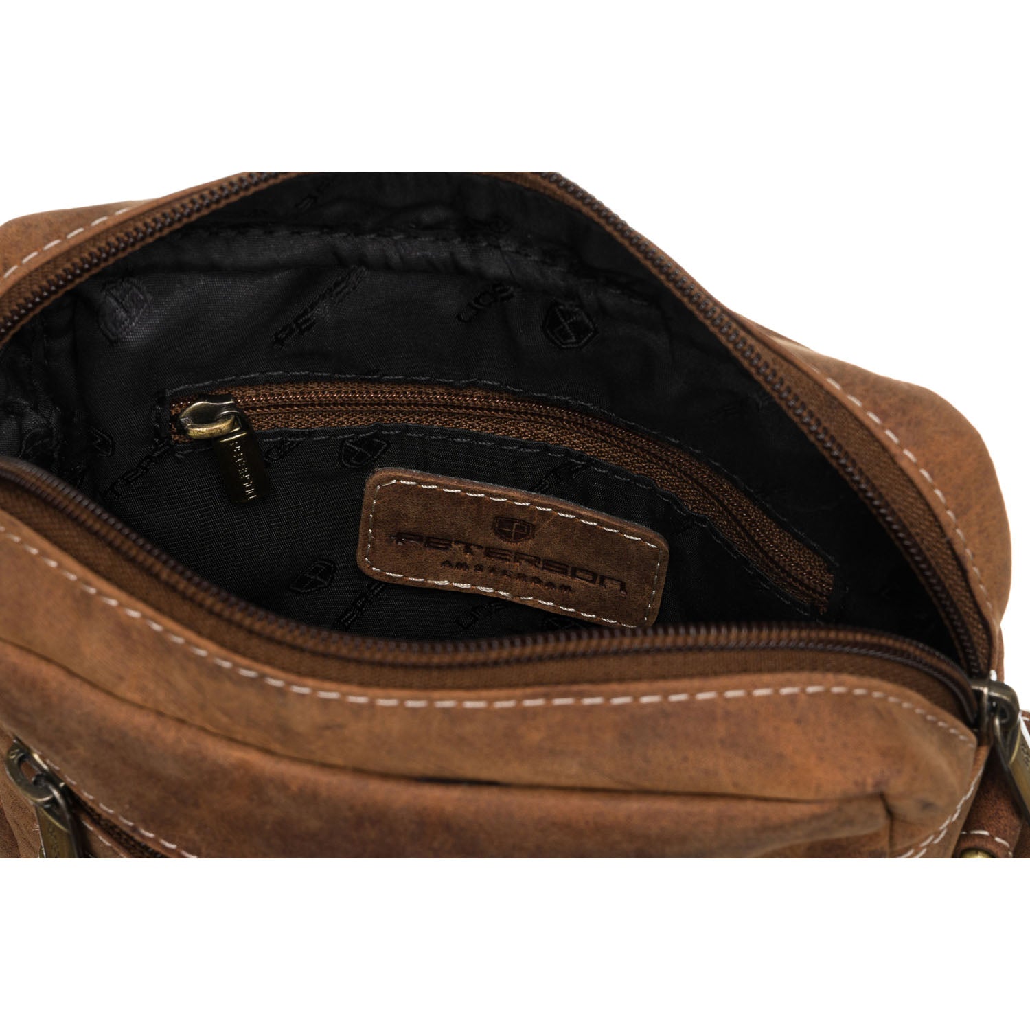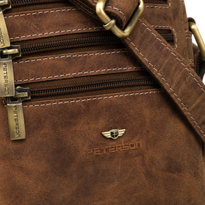 Peterson vīriešu soma no dabīgas ādas, brūnā krāsā, ar vienu nodalījumu un piecām kabatām.