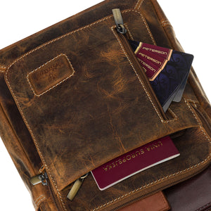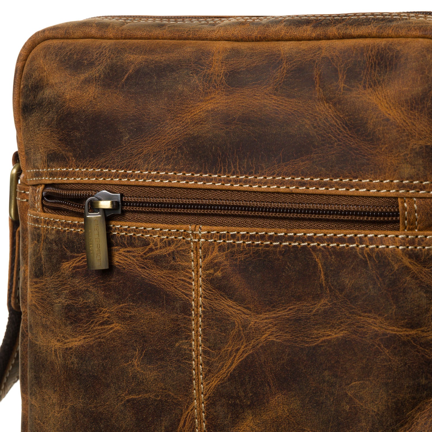 Peterson vīriešu soma no dabīgās ādas, brūna ar regulējamu siksnu