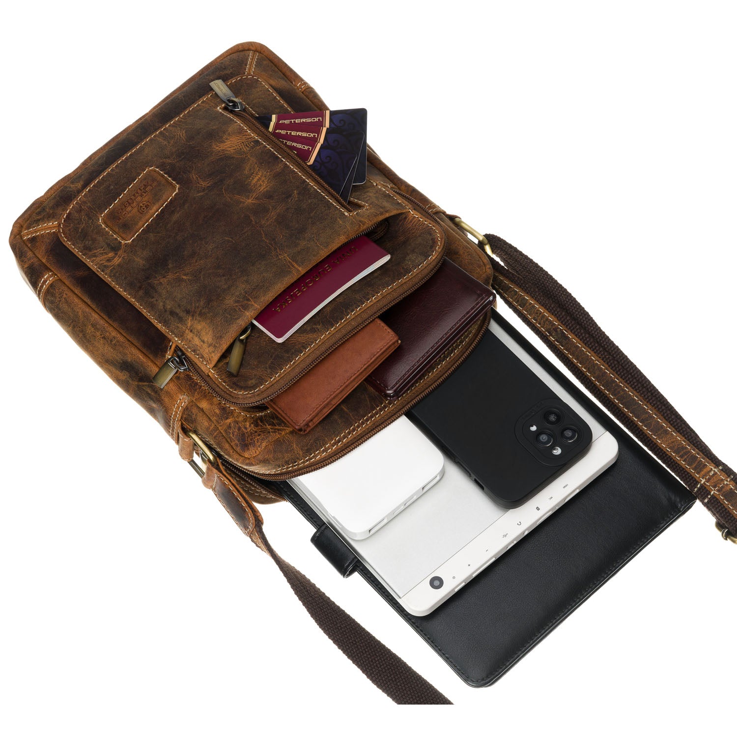 Peterson vīriešu soma no dabīgās ādas, brūnā krāsā, ar regulējamu siksnu.