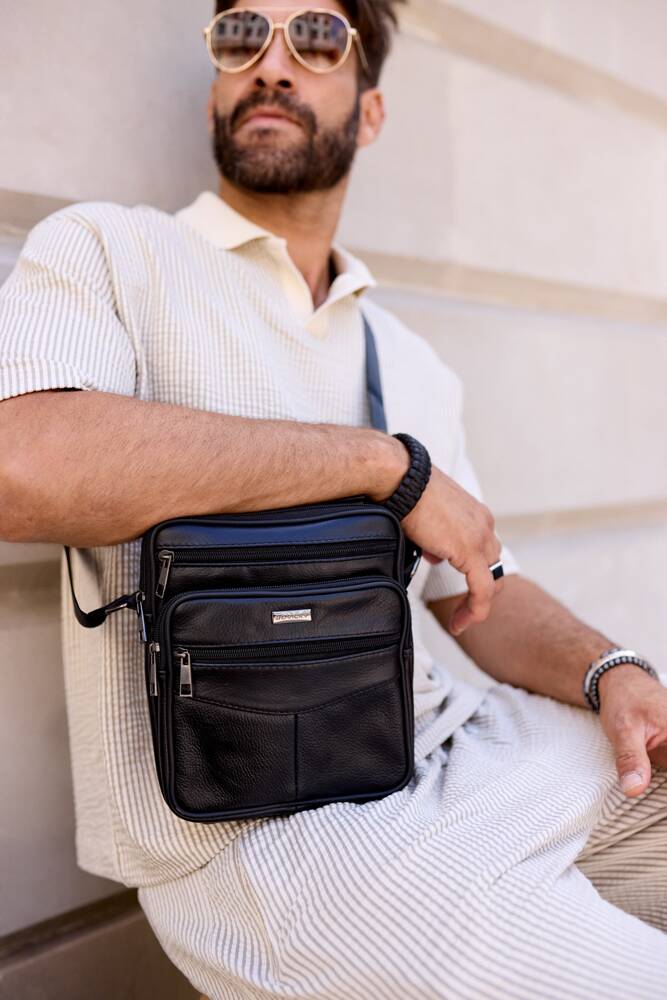 Rovicky vīriešu soma no dabīgās ādas, melna