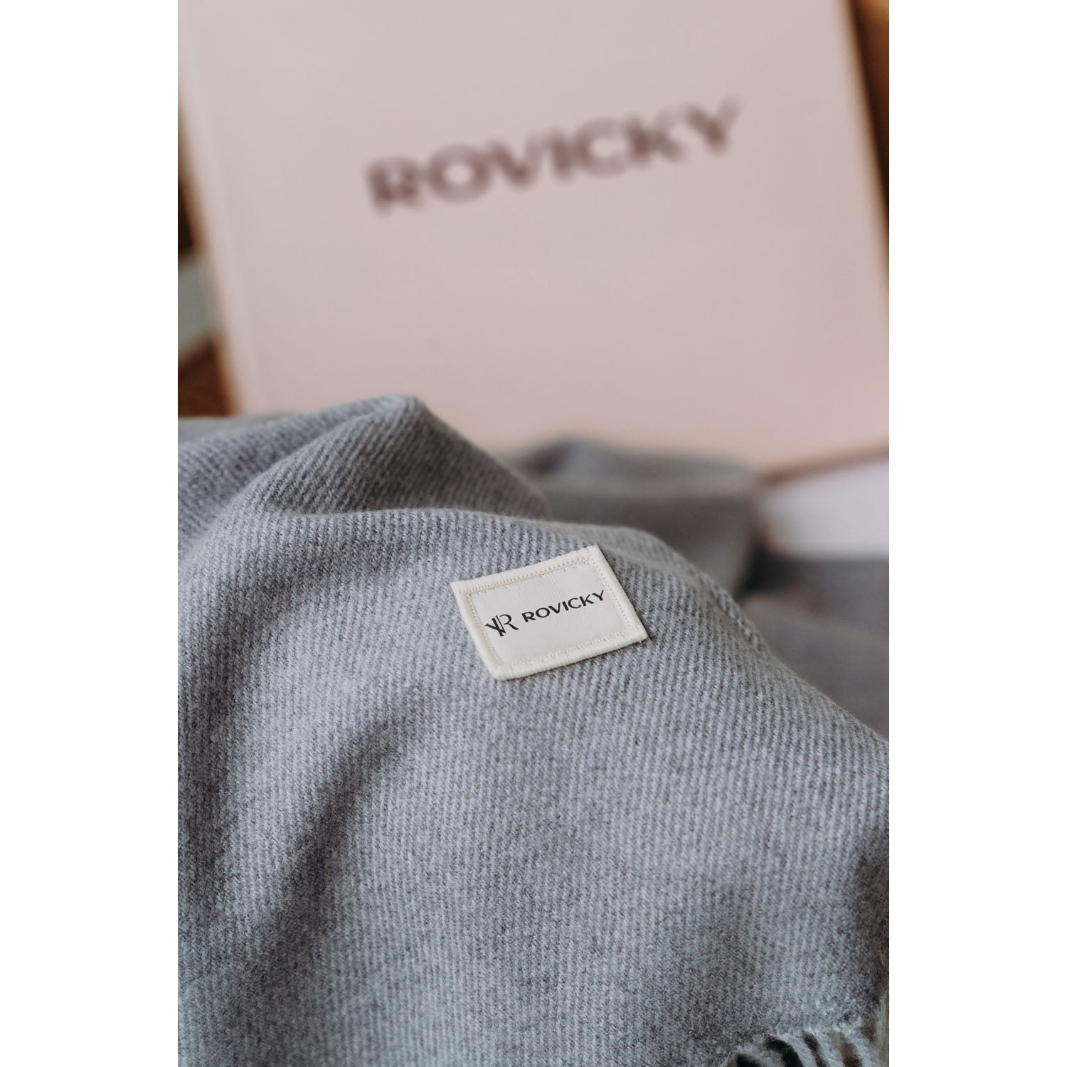 Rovicky šalle – elegants pelēks aksesuārs, lieliski piemērots rudenim, ziemai un pavasarim.