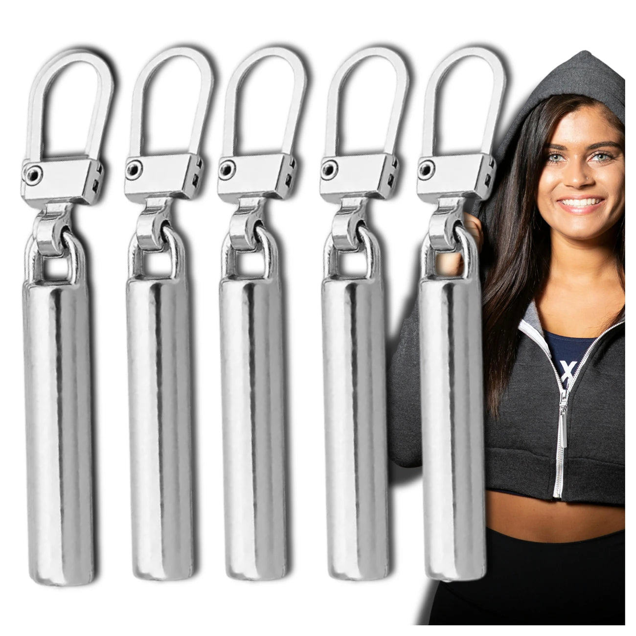Sudraba krāsas metāla rāvējslēdzēja uzgaļi, 5 gab. N379