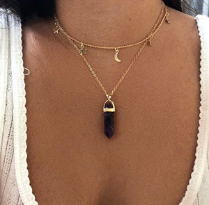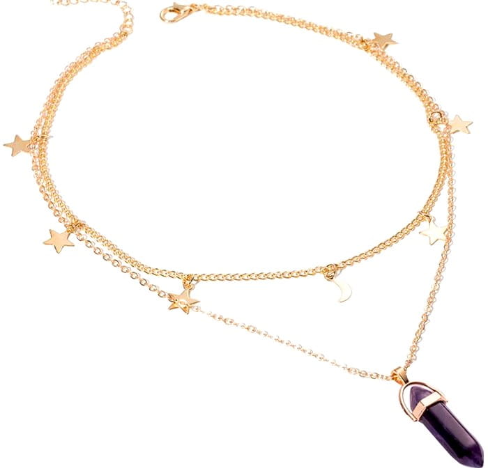 Šī kaklarota ar violetu kulonu ir dekorēta ar smalkiem zvaigžņu un mēness elementiem zeltā un sudrabā. Lielākais dekoratīvais elements ir violeta lode, kas izgatavota no augstas kvalitātes sintētiskā stikla.