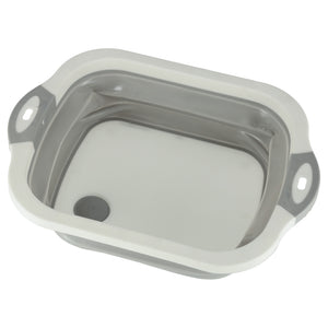 Salokāma silikona bļoda ar notecināšanas atveri 5,5 l - griešanas dēlis un pilienu savākšanas paplāte 4 vienā