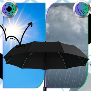 Stilingas ir praktiškas skėtis, kuris puikiai tinka tiek moterims, tiek vyrams. Kompaktiškas dizainas leidžia jį lengvai nešiotis rankinėje, kuprinėje ar portfelyje. Automatinis mechanizmas leidžia greitai atidaryti ar uždaryti skėtį vienu mygtuko paspaudimu. Tvirtas dizainas su žaliais akcentais užtikrina ilgaamžiškumą ir atsparumą vėjui. Hidrofobinis audinys leidžia vandeniui lengvai nutekėti, o UV danga apsaugo nuo saulės spindulių.
