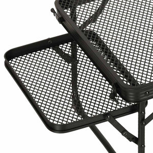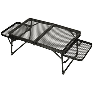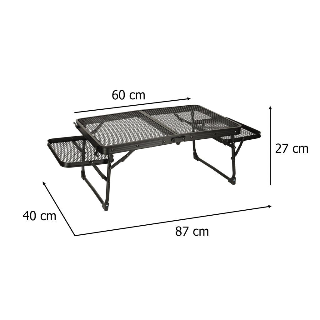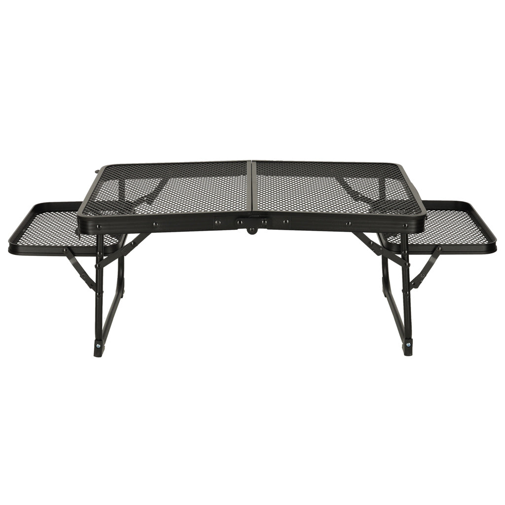 Šis kempinga galds ar alumīnija konstrukciju nodrošina vieglumu un izturību pret rūsu , savukārt dzelzs sieta galda virsma palielina tā izturību un elpojamību. Šis modelis ir ideāli piemērots lietošanai ārpus telpām – alumīnija kempinga galds saglabā savu izturību pat intensīvas lietošanas un sarežģītos laika apstākļos. Vienkārša tīrīšana un ātra žūšana ir papildu priekšrocības, kas padara to par lielisku izvēli pludmalei, lauku mājai vai festivālam.