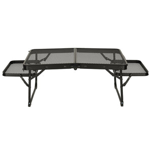 ● Kempinga galds ar papildu sānu galdiņiem — nodrošina vairāk vietas traukiem, dzērieniem un nepieciešamajiem piederumiem, palielinot kopīgu maltīšu ērtības brīvā dabā.