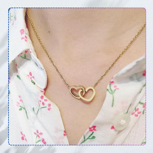 Šī kaklarota ir izgatavota no antialerģiska rotaslietu tērauda, kas nodrošina komfortu un izturību. Rotaslietai ir eleganta ķēdīte ar divām sirdīm, kas piešķir smalkumu un romantiku.
