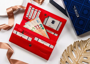 Šis elegantais un praktiskais sieviešu maks no 4U Cavaldi ir lieliska izvēle tiem, kas novērtē kvalitāti un stilu. Izgatavots no eko ādas, tas ne tikai izskatās grezni, bet arī ir videi draudzīgs. Sarkanā krāsa piešķir ekskluzivitāti, un lielais izmērs nodrošina, ka jums būs pietiekami daudz vietas visām jūsu mantām. Ērts nodalījums monētām ar rāvējslēdzēju un daudzi karšu nodalījumi palīdzēs jums uzturēt kārtību. Lai gan makam nav RFID aizsardzības, tā funkcionalitāte un dizains kompensē šo trūkumu.