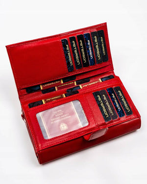 Šis elegantais sieviešu maks, kas izgatavots no īstas ādas, ir lieliska izvēle tiem, kas novērtē kvalitāti un funkcionalitāti. Spilgti sarkanā krāsa piešķir stilu un ekskluzivitāti, savukārt lielais izmērs nodrošina, ka viss nepieciešamais ir pa rokai.