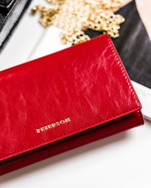 Šis elegantais sieviešu maks no Peterson kolekcijas ir izgatavots no augstas kvalitātes īstas ādas. Sarkanā krāsa piešķir ekskluzivitāti un stilu, bet vidējais izmērs nodrošina ērtības ikdienas lietošanā. Makā ir pietiekami daudz vietas kartēm un monētām, tāpēc tas ir lieliski piemērots gan ikdienas lietošanai, gan īpašiem gadījumiem.