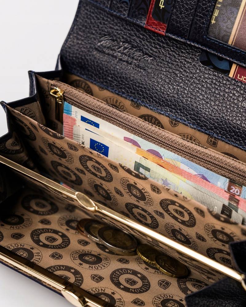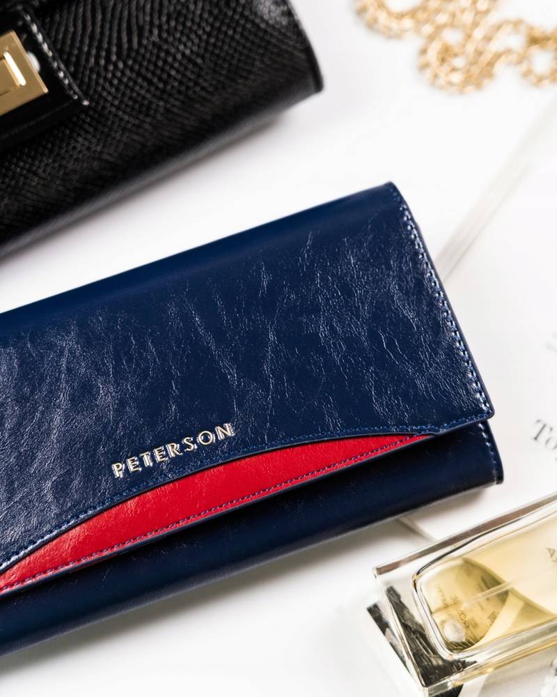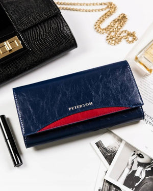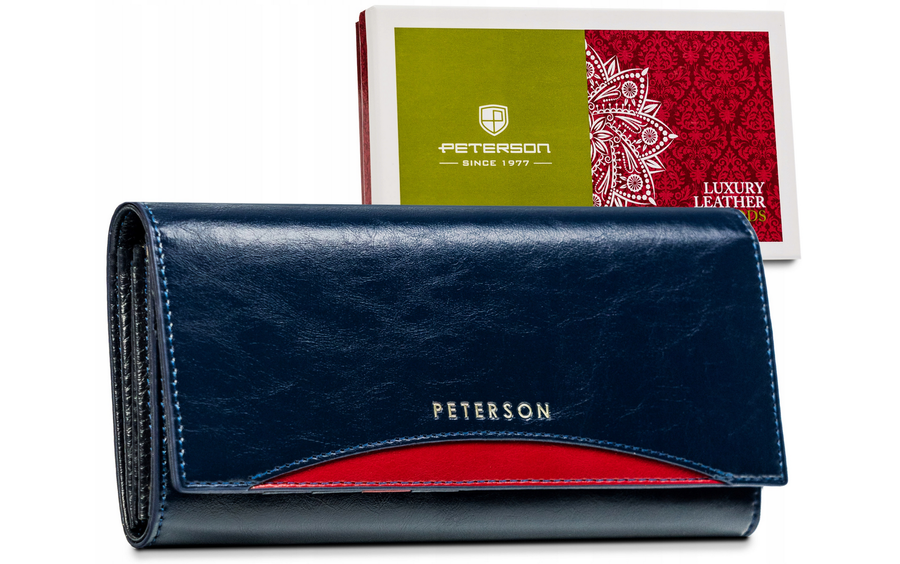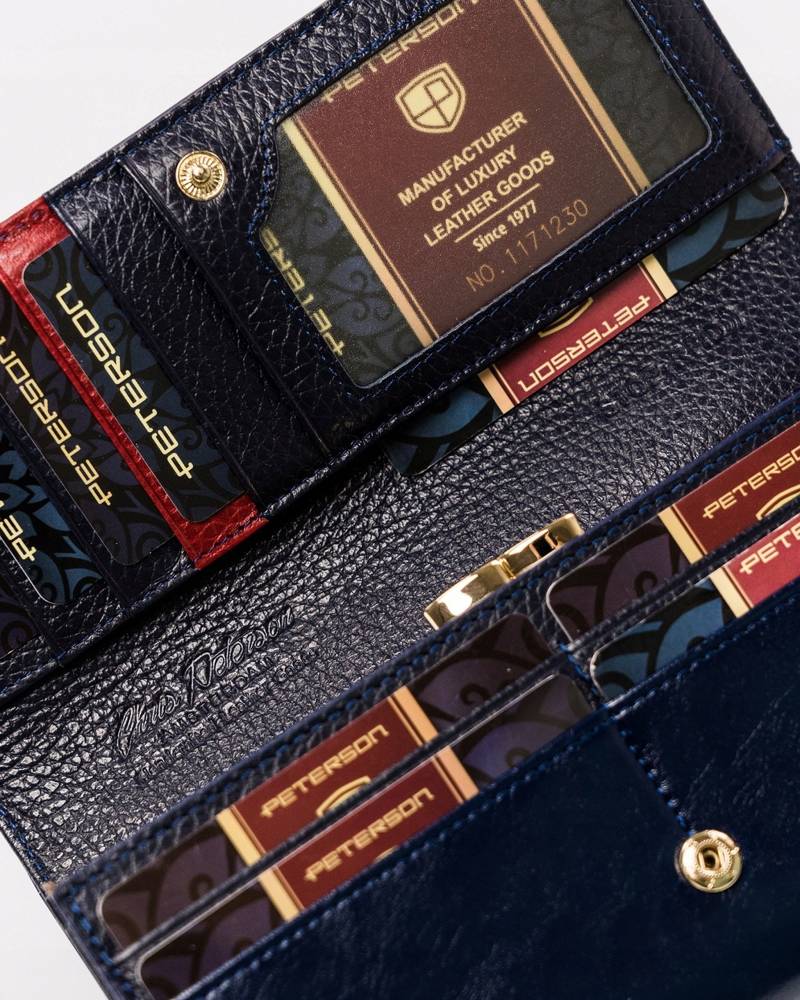 Šis elegantais sieviešu maks no Peterson kolekcijas ir izgatavots no augstas kvalitātes īstas ādas. Tumši zilā krāsa piešķir tam atšķirīgu un stilīgu izskatu. Lielais izmērs nodrošina, ka jums būs pietiekami daudz vietas visām nepieciešamajām lietām. Makam ir 6-10 karšu nodalījumi un atsevišķs nodalījums monētām, padarot to ārkārtīgi praktisku ikdienas lietošanai.