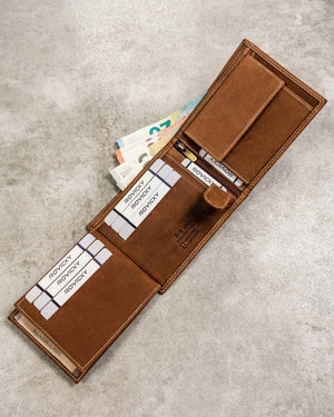 Šis elegantais un funkcionālais maks ir lieliska izvēle vīriešiem, kuri novērtē kvalitāti un stilu. Izgatavots no dabīgas zamšādas un nubuka ādas, tas nodrošina izturību un komfortu. Gaiši brūnā krāsa piešķir klasisku un daudzpusīgu izskatu, kas piemērots dažādiem gadījumiem. Makam ir RFID aizsardzība, kas palīdz aizsargāt jūsu kartes no nevēlamas skenēšanas. Ar 6-10 karšu nodalījumiem tas nodrošina pietiekami daudz vietas visiem jūsu svarīgajiem dokumentiem. Pateicoties lielajam izmēram, šis maks ir praktisks un ietilpīgs, un tā izmēri 10,5 cm x 12,5 cm x 2,5 cm ļauj tam ērti ietilpt kabatā vai somā.