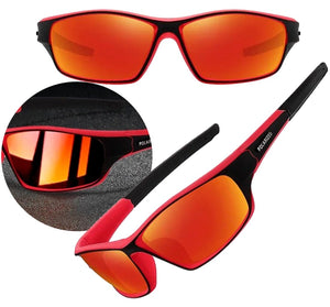 Sportiskas polarizētas saulesbrilles - elegants dizains ar sarkanām spoguļlēcām