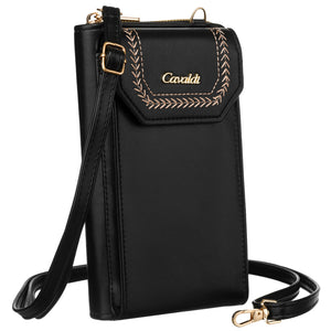 Liela 4U CAVALDI sieviešu rokassoma, kas izgatavota no melnas organiskās ādas ar rāvējslēdzēju.