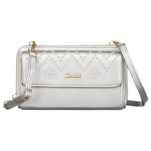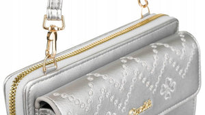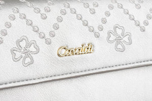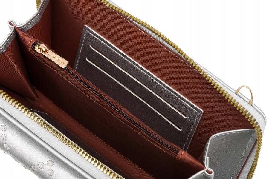 Liela 4U CAVALDI sudraba krāsas sieviešu rokassoma no organiskās ādas ar rāvējslēdzēju.