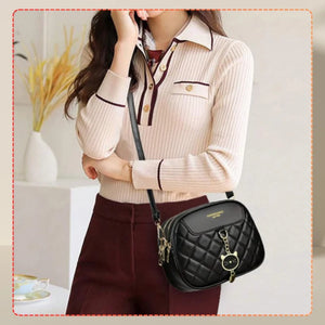 Šī elegantā melnā rokassoma labi sader ar dažādiem stiliem un ir praktiska izvēle ikdienas lietošanai.