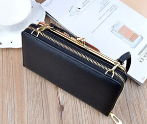 - Iekšpusē atradīsiet nodalījumu ar rāvējslēdzēju un kabatas 6 kredītkartēm.