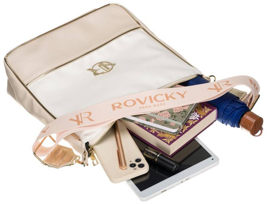 Šī elegantā sieviešu rokassoma no Rovicky ir lieliska izvēle pilsētas dzīvei. Tā ir izgatavota no augstas kvalitātes organiskās ādas, bēšā krāsā, kas viegli piestāvēs dažādiem apģērba stiliem.