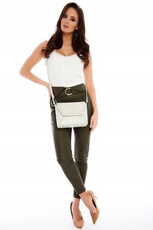 Šī elegantā rokassoma ir izgatavota no augstas kvalitātes īstas ādas, kas nodrošina izturību un stilīgu izskatu. Galvenā krāsa ir gaiši pelēka, kas labi sader ar dažādām apģērba kombinācijām.