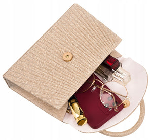 Meklējat stilīgu, mazu rokassomiņu, kas piemērota gan ikdienas, gan vakara valkāšanai? Rovicky J84 ir elegants aksesuārs ar smalku spīdumu un ērtu dizainu. Izgatavota no augstas kvalitātes auduma, šī zelta krāsas rokassoma lieliski papildina sievišķīgu tēlu.