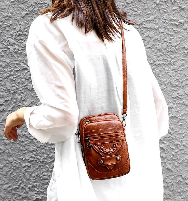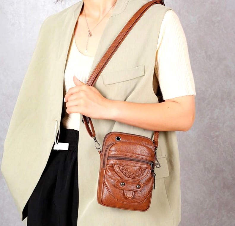 Meklējat kompaktu, stilīgu un funkcionālu rokassomiņu savam viedtālrunim un citām svarīgām lietām? Šī vintage stila sieviešu mini rokassoma-maksa, kas izgatavota no mīkstas organiskās ādas, ir 2-in-1 risinājums, kas noderēs ikvienai sievietei gan ikdienā, gan ārpus tās.