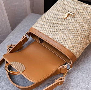 Atklāj šīs vasaras modes favorītu – elegantu salmu plecu somu , kas lieliski apvieno stilu, praktiskumu un ilgtspējīgu modi. Izgatavota no sintētiska salmu imitējoša auduma ar smalkām eko ādas detaļām , šī soma ne tikai izskatās izcili, bet arī atbilst mūsdienu sievietes vērtībām.