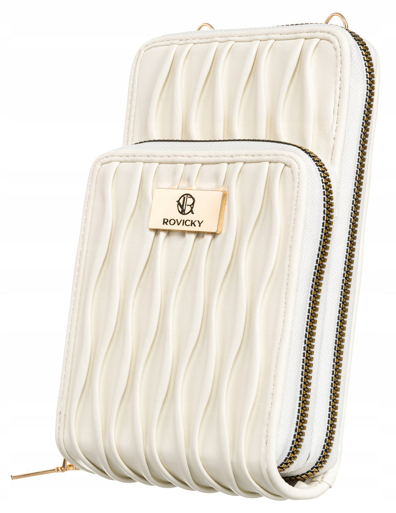 Rovicky sieviešu rokassoma no organiskās ādas, balta, ar rāvējslēdzēju, lieliski piemērota ikdienas lietošanai.