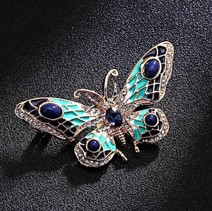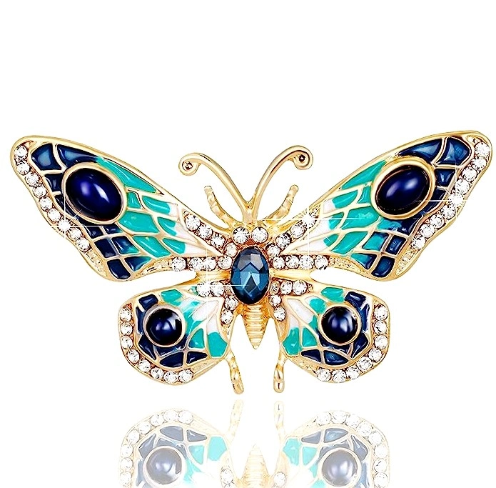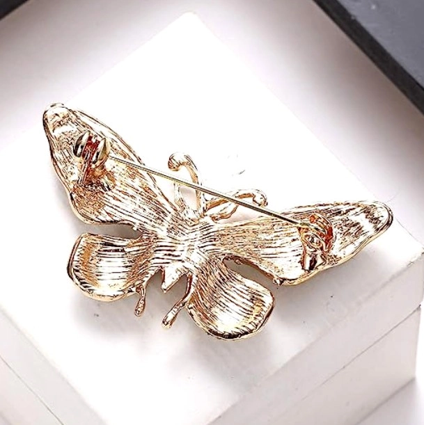 Šī elegantā tauriņa piespraude, kas dekorēta ar mākslīgajiem dārgakmeņiem un kristāliem, piešķirs jūsu tērpam eleganci. Tā ir lieliski piemērota dažādiem apģērbiem un aksesuāriem, piemēram, kleitām, jakām, cepurēm, somām vai mēteļiem.