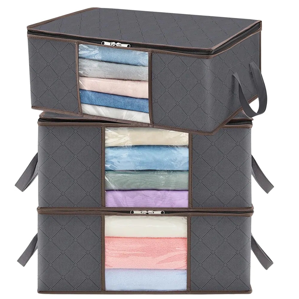 Šis trīs daļu organizatoru komplekts ir ideāls risinājums gultasveļas, drēbju un paklāju glītai glabāšanai. Paplātes pasargā no putekļiem, kodēm un netīrumiem, palīdzot uzturēt kārtību jūsu skapī vai pieliekamajā.