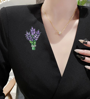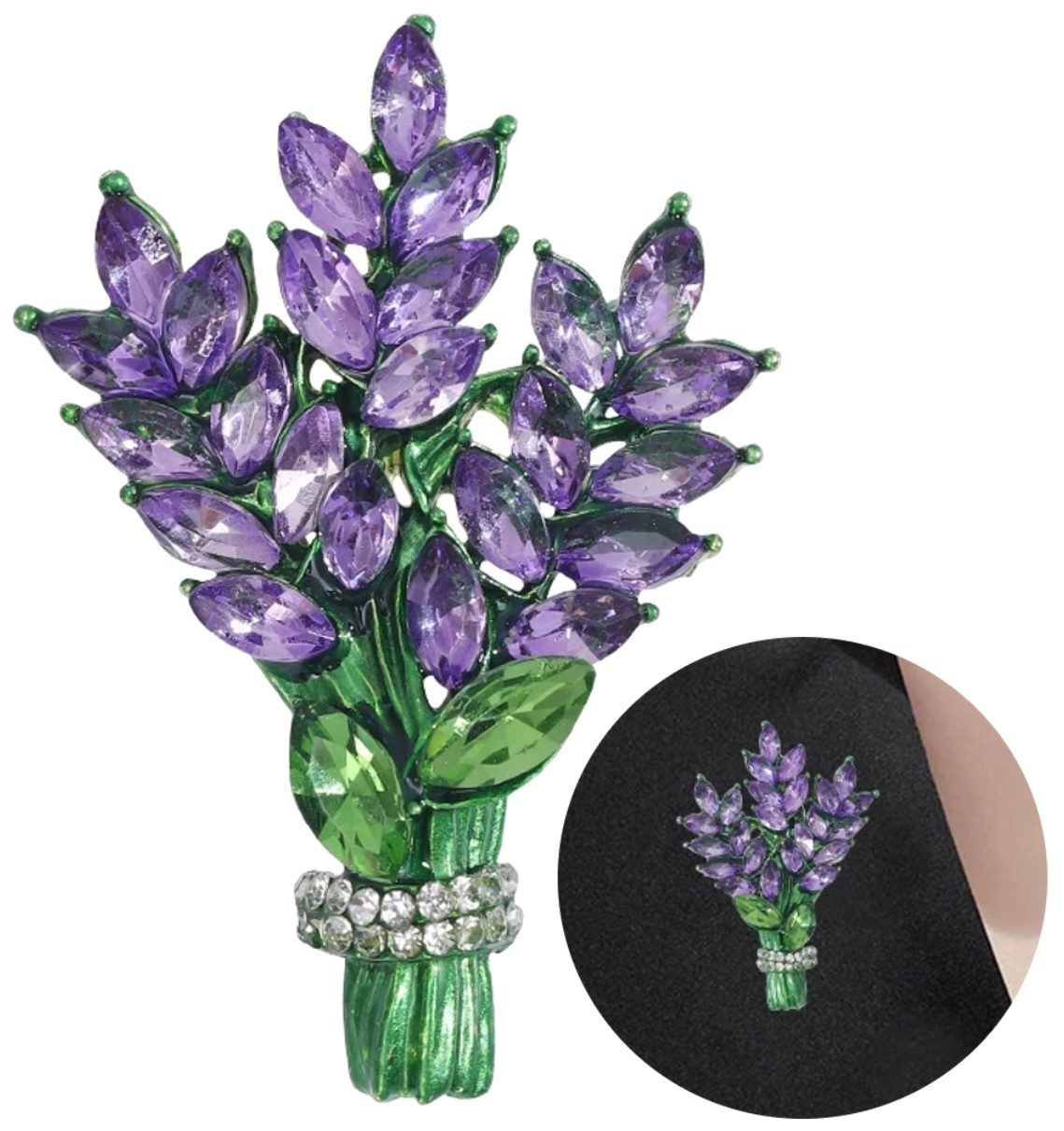 Šī elegantā broša ar lavandas motīvu ir lielisks aksesuārs, kas piešķirs jūsu tērpam eleganci. Tā ir ideāli piemērota valkāšanai uz kleitas, jakas, cepures, rokassomas vai mēteļa.