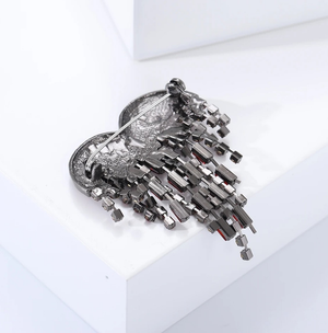Šī elegantā broša ir lielisks aksesuārs, kas piešķirs jūsu tērpam unikalitāti un šarmu.