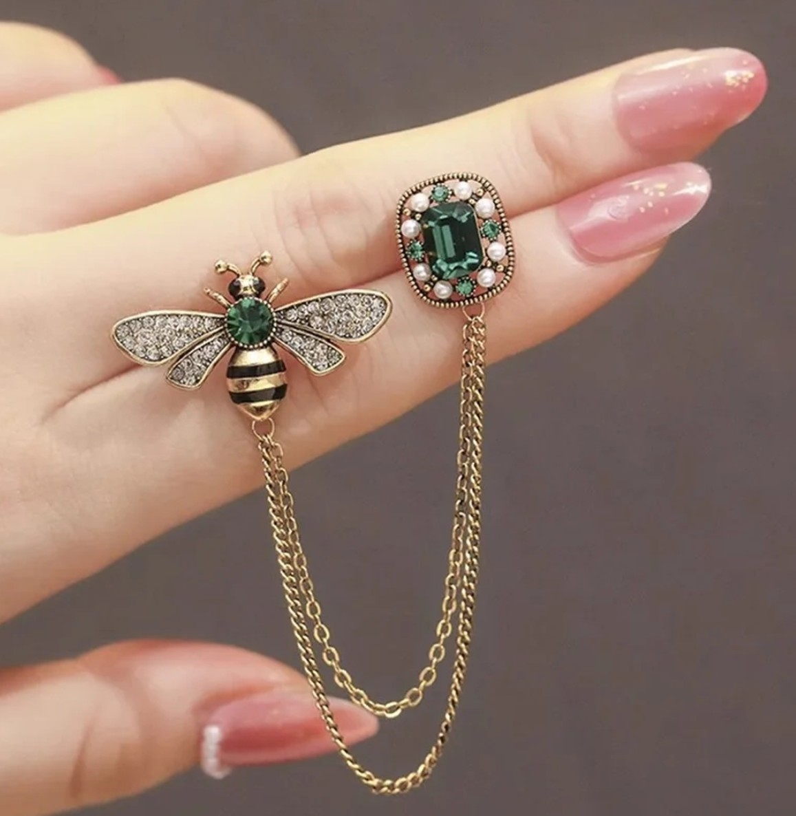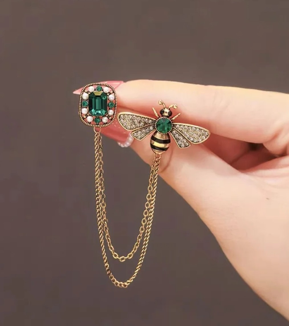 Eleganta bites broša ar ķēdīti, kas piešķirs jūsu tērpam unikalitātes pieskārienu.