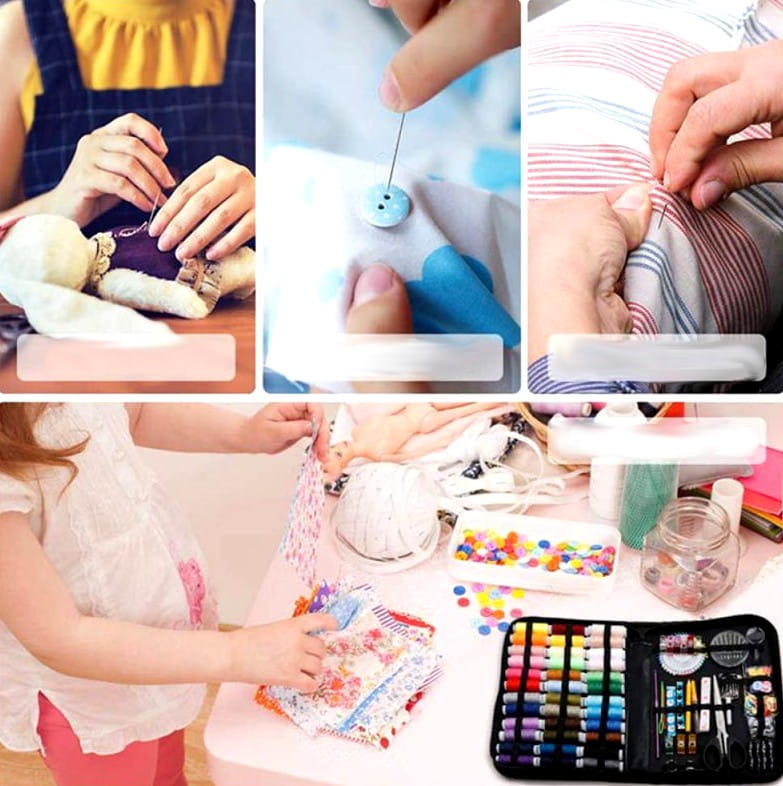 - Iepakojuma saturs: Papildus krāsainiem diegiem un adatām komplektā ietilpst arī pogas universālās krāsās un palielināmais stikls, kas palīdzēs veikt precīzas korekcijas.