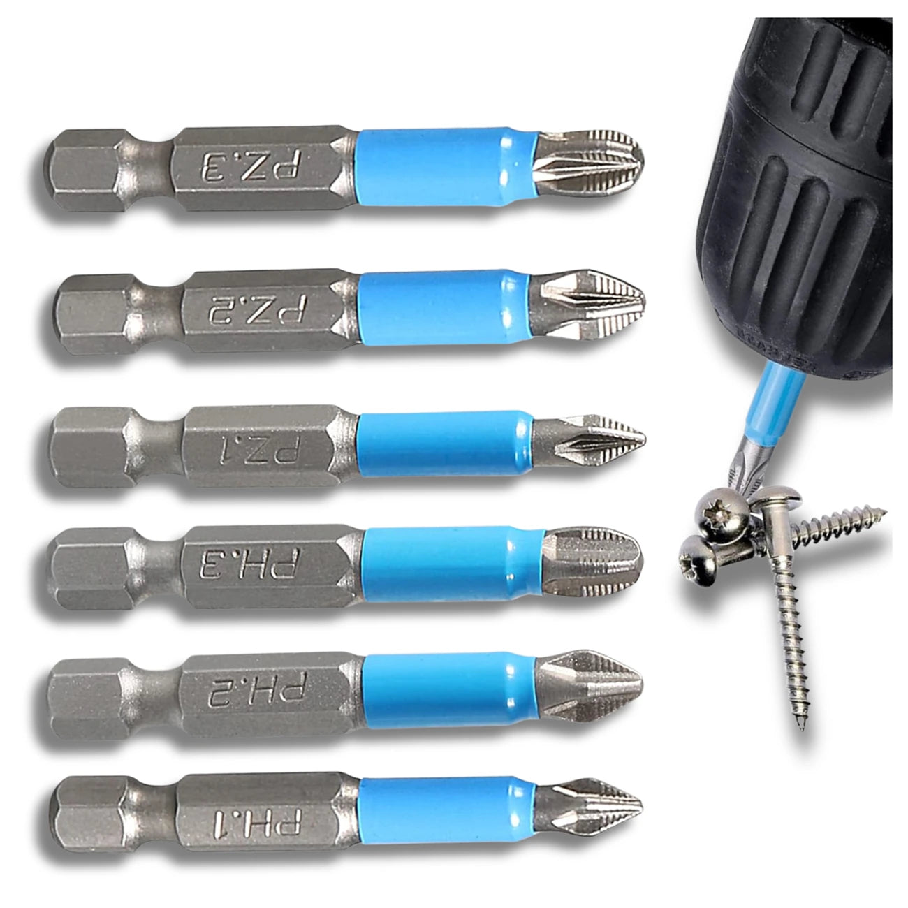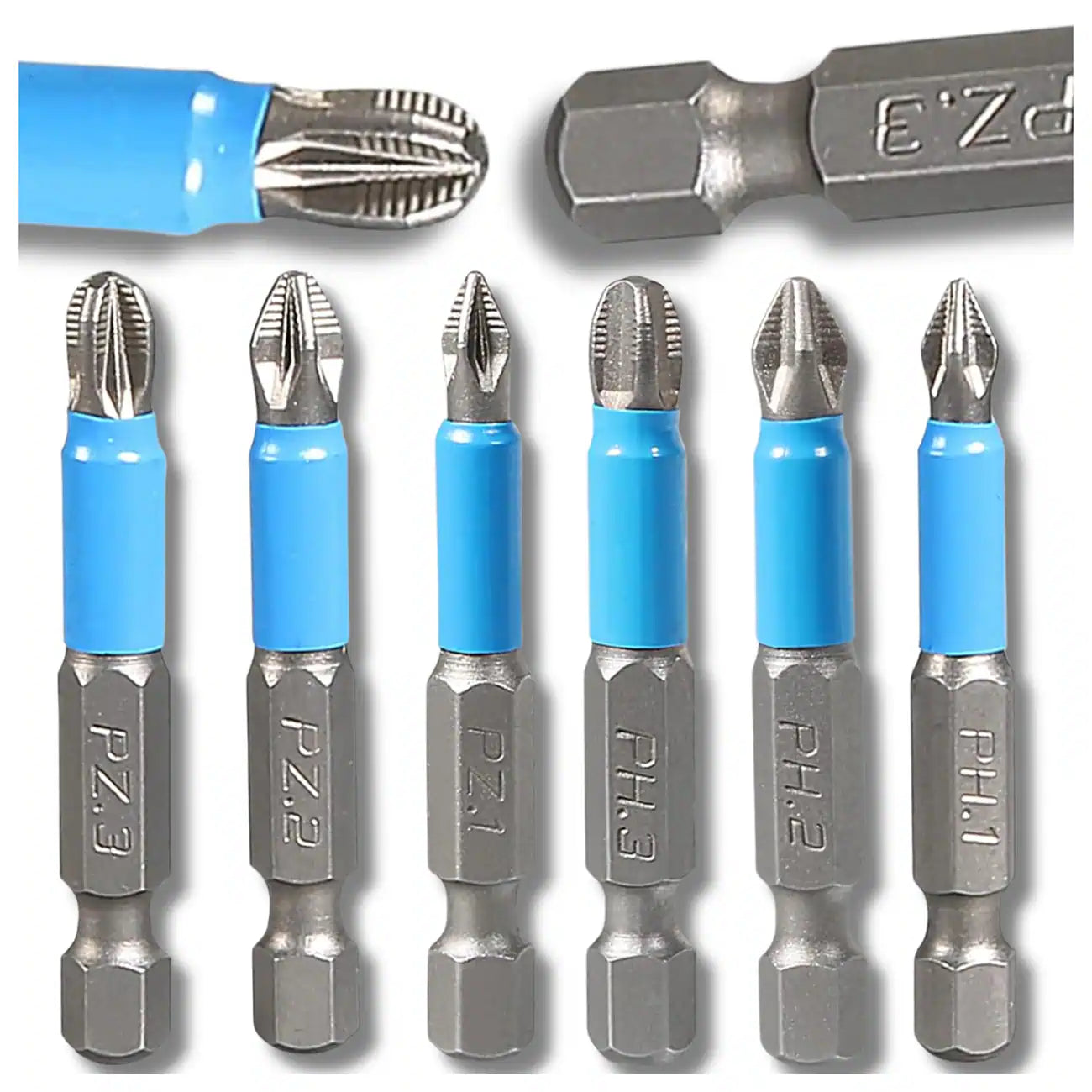 - Komplektā ietilpst PH1, PH2, PH3 (Phillips) un PZ1, PZ2, PZ3 (Pozidriv) uzgaļi universālām krustveida un PZ skrūvēm.