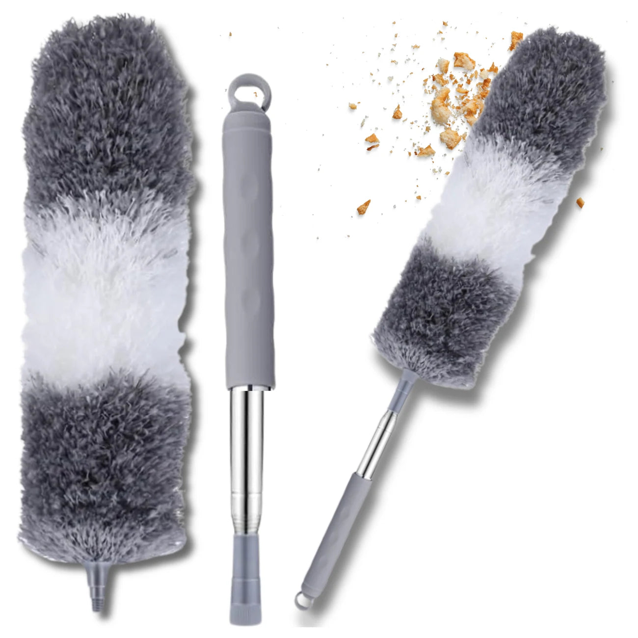 Produkta veids un mērķis: Teleskopisks putekļu slotiņa ar mikrošķiedru, kas paredzēta efektīvai putekļu noņemšanai no ventilatoriem, mēbelēm, automašīnām, žalūzijām un citām virsmām.