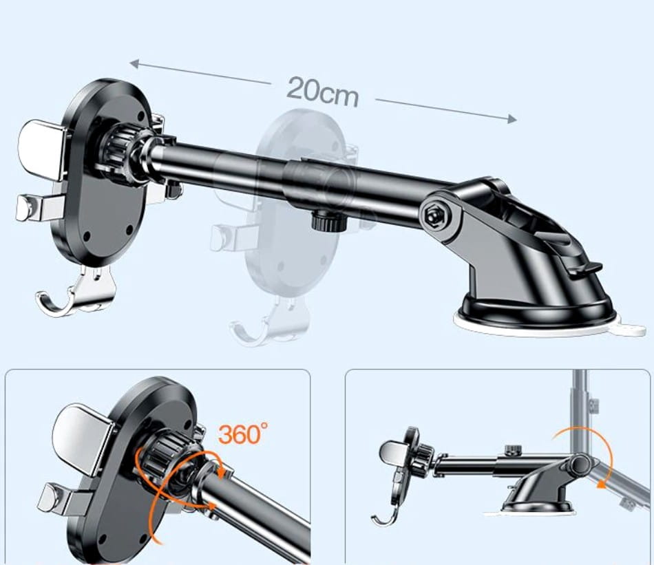 - Daudzpusība: regulēšanas diapazons no 6,4 cm līdz 10,5 cm, saderīgs ar lielāko daļu tālruņu modeļu.